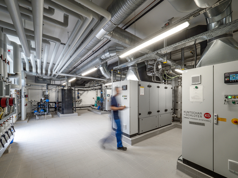 Drittens werden neue Ansätze zur Energiespeicherung und sektorübergreifenden Energiebewirtschaftung angewandt, um die energetische Optimierung mit netzdienlichem Betrieb zu erreichen. Der Gasspeicher wurde vergrößert, ein Batteriespeicher gebaut und ein Wärmespeicher errichtet. Für die Optimierung des Smart-Grid wird ein Energiemanagementsystem zur effizienten Regelung eingesetzt, so dass die vorhandenen Energiequellen bestmöglich genutzt werden und gleichzeitig das Netz entlastet wird.